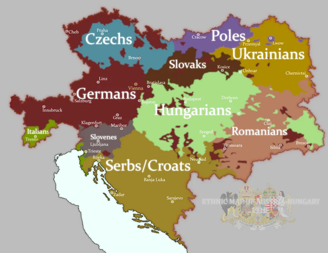 A detailed map of the ethnic divisions in the former Austrian Empire