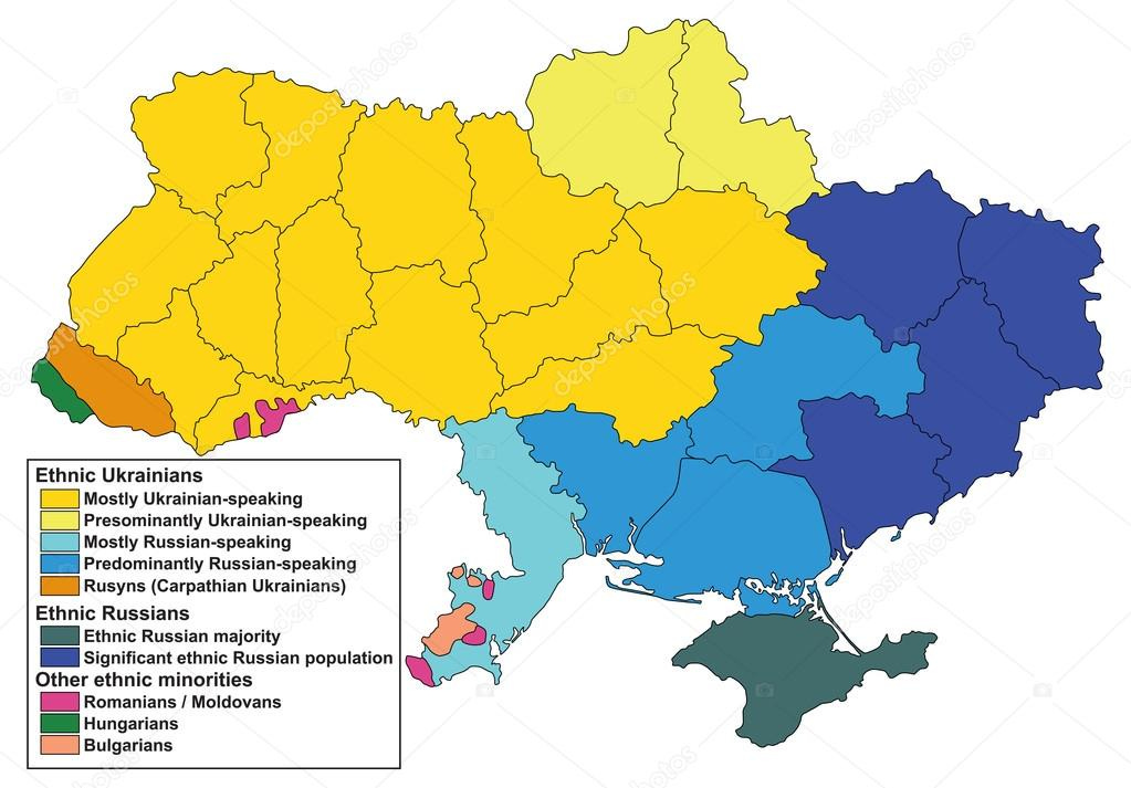 Ethnic map of Ukraine. Civil war was not inevitable because of this division alone; however, the ethnic division meant there was a possibility of conflict.